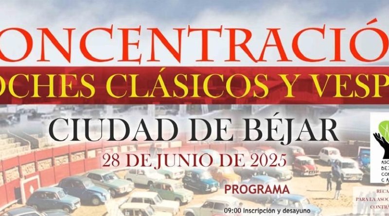 El próximo 28 de junio, la ciudad de Béjar será escenario de una de las citas más esperadas para los amantes del motor clásico. La Concentración de Coches Clásicos y Vespas, organizada con fines solidarios en beneficio de la Asociación Bejarana Contra el Cáncer, reunirá a decenas de vehículos históricos que recorrerán diversos enclaves de la comarca.