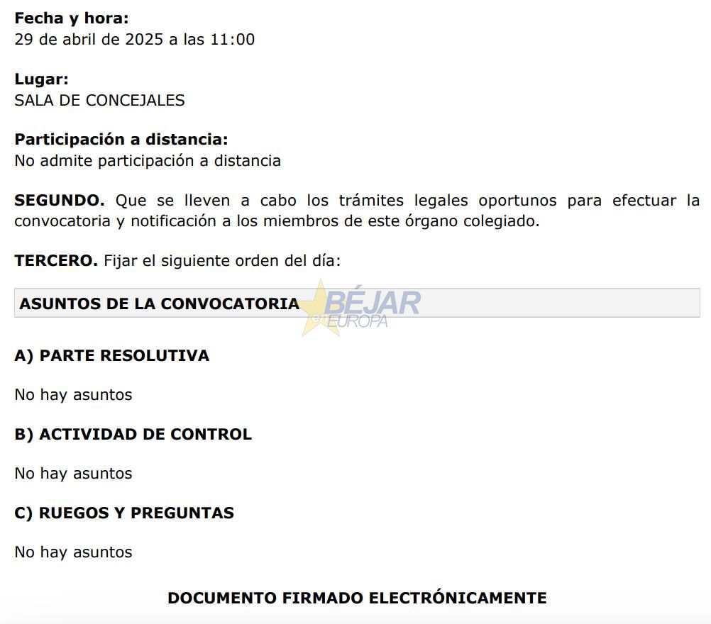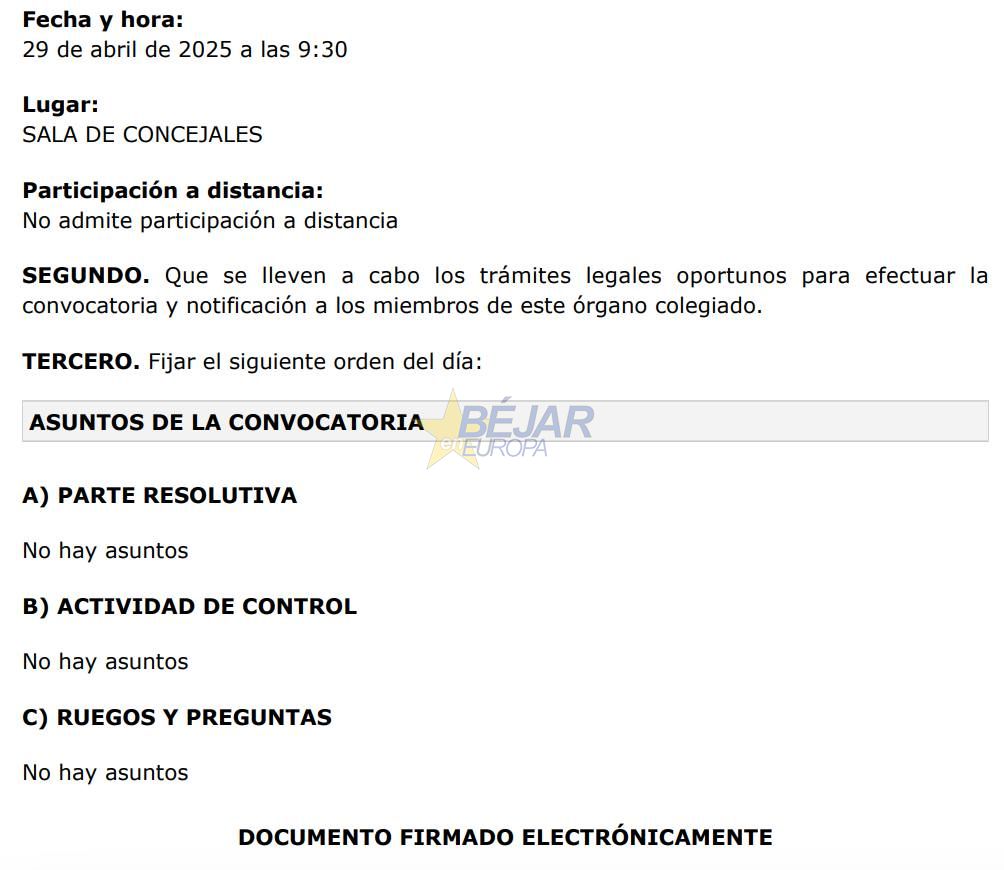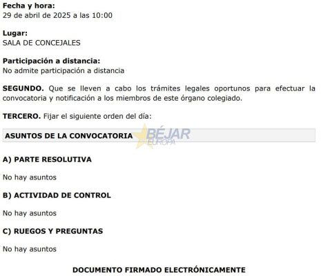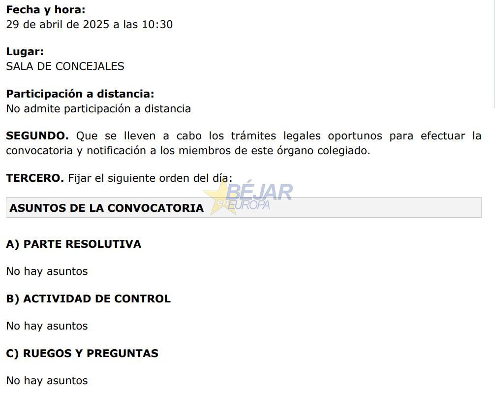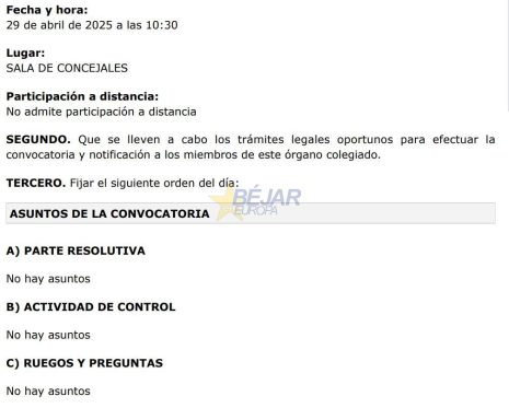 Como ya viene siendo «habitual en las últimas semanas», el equipo de Gobierno PP-Vox convoca las comisiones informativas totalmente vacías de contenido. Así lo han denunciado desde la oposición varios concejales llegándose a preguntar «si no hay facturas que pagar, o si no hay asuntos para informar de licencias, declaraciones responsables, personal, medioambiente, deportes, turismo, cultura, festejos, urbanismo, obras o de servicios sociales».