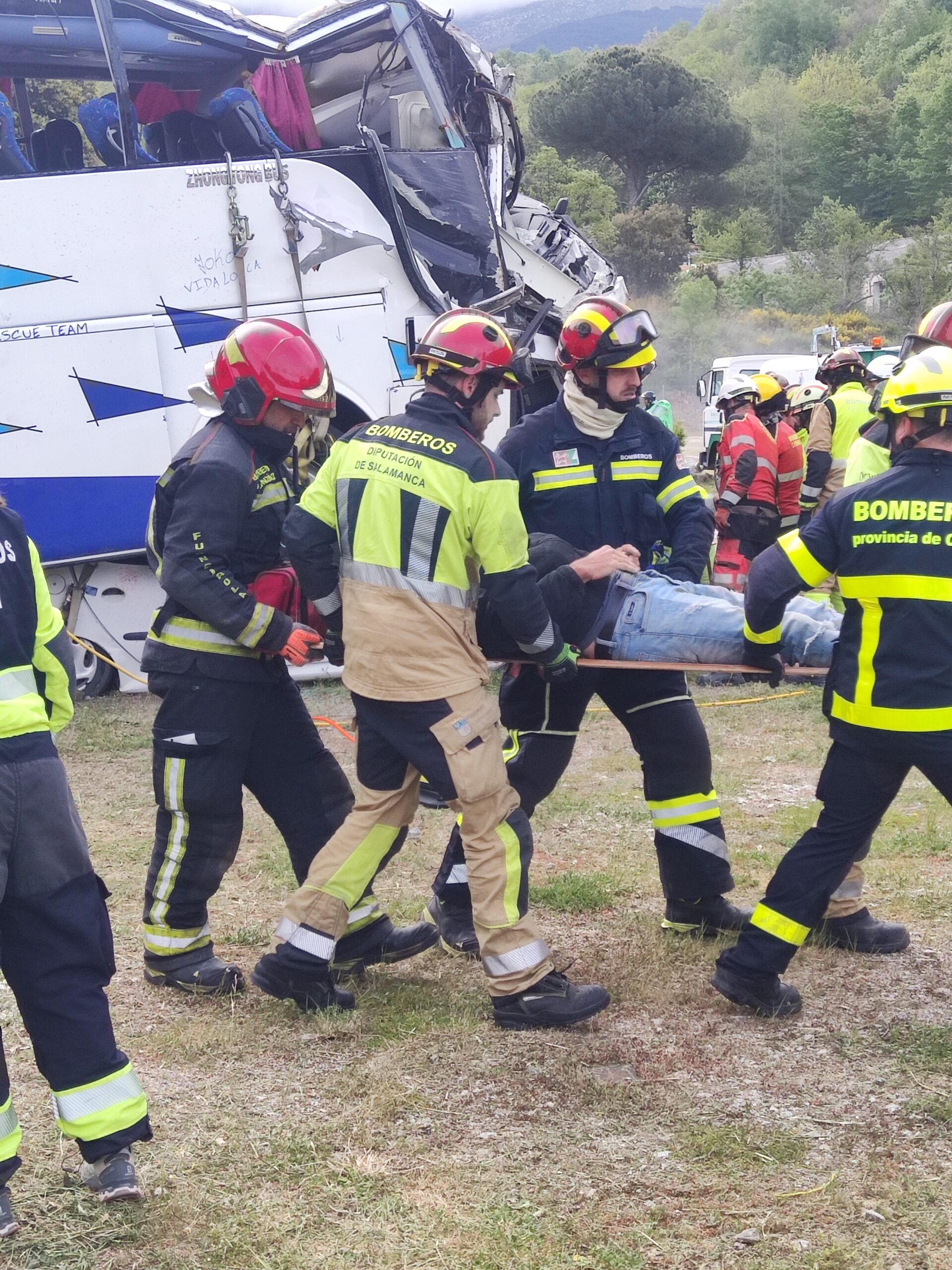 - Un autobús siniestrado con victimas en su interior y un coche debajo con ocupantes.